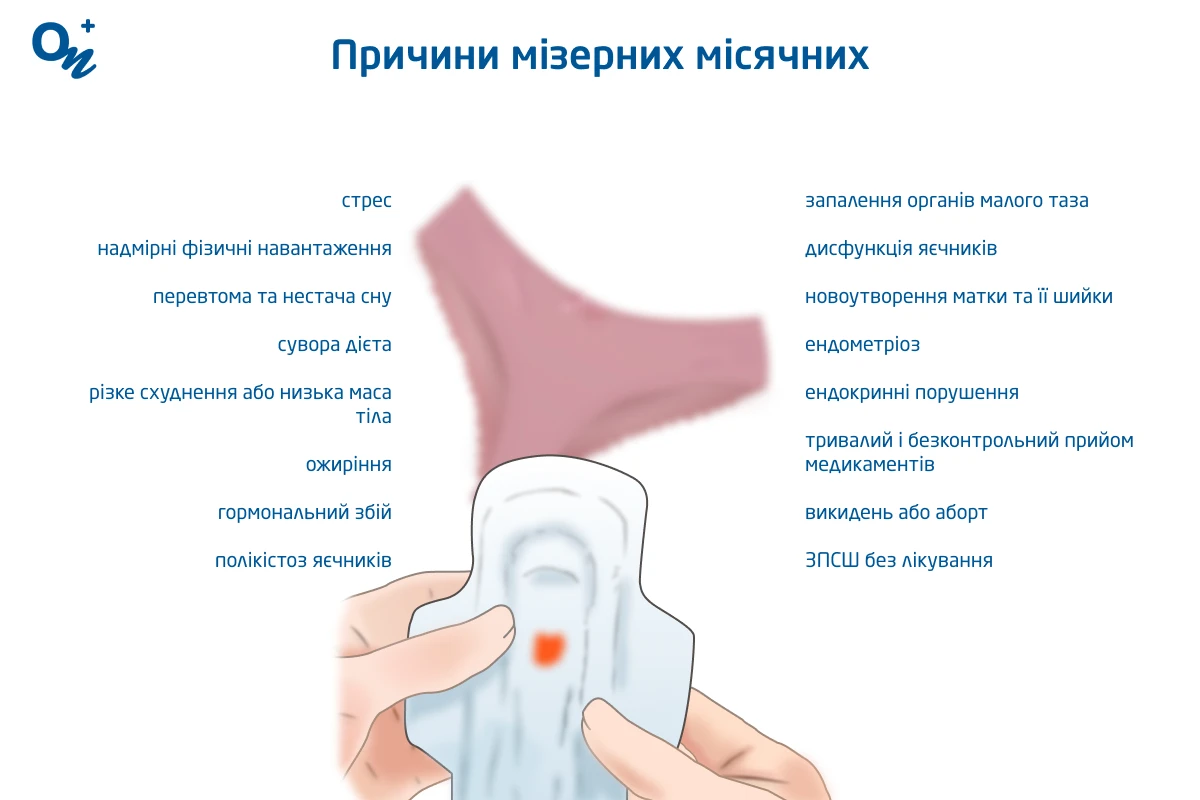 Хронічний стрес: Тривалий стрес може призвести до гормонального дисбалансу, що впливає на менструальний цикл. · Дієта: Погане харчування або …