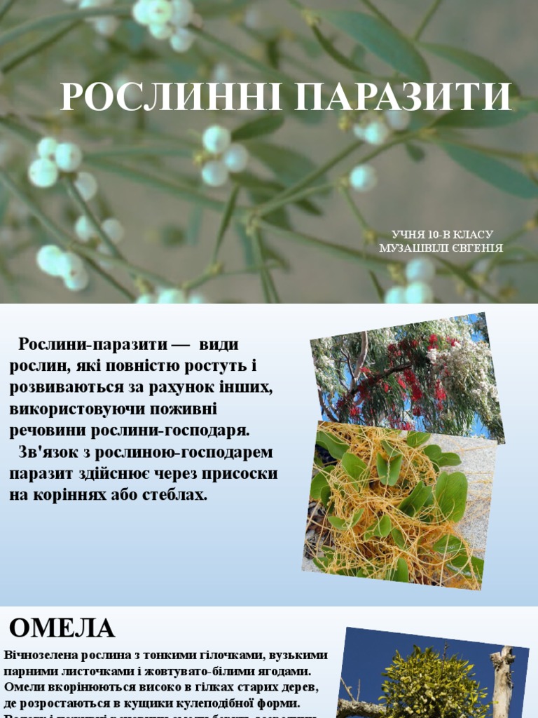 У ботаніці паразитами називають такі види рослин, які повністю ростуть і розвиваються за рахунок інших, використовуючи поживні речовини рослини-господаря.