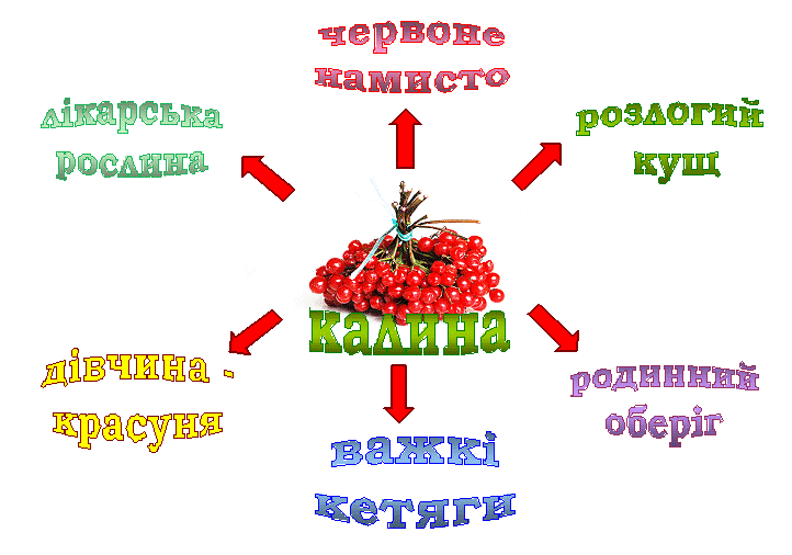 Калина символізує материнство: кущ — сама мати; цвіт, ягідки — діти. Це також уособлення дому, батьків, усього рідного.