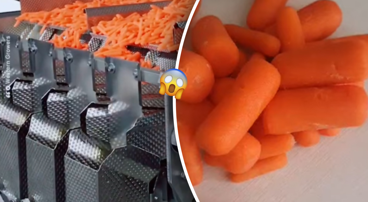 Як роблять бебі моркву? Згідно з роликом, моркву спочатку миють і сортують, видаляючи занадто товсті екземпляри. Потім її нарізають на шматочки завдовжки близько 5 см, очищають від шкірки і полірують до характерної гладкості. Готовий продукт упаковують у пластикові пакети і відправляють у магазини.