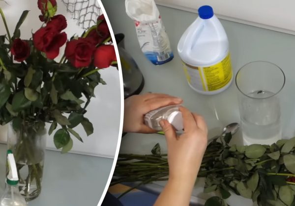 Розчиніть цукор та оцет у воді. Оновіть зрізи троянд та поставте їх у підготовлений розчин. Через 10-15 хвилин квіти оживуть та стануть більш свіжими.