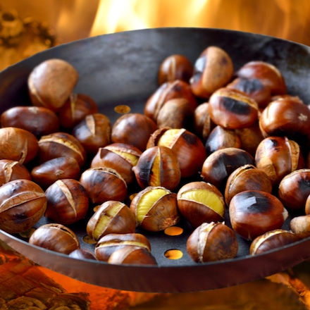 Перед приготуванням промийте каштани в холодній воді та висушіть їх. Обов’язково надріжте зовнішню шкаралупу каштана, щоб вона не лопнула.
