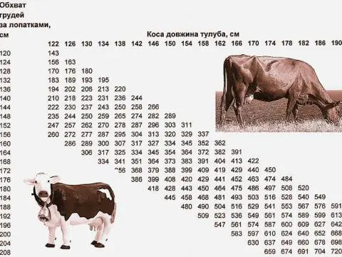Для визначення живої ваги великої рогатої худоби необхідно знати два проміри – косу довжини тулуба (від плеча-лопаткового з'єднання – до заднього виступу сідничних бугрів). Цей промір знімається по діагоналі мірною палкою (мірною стрічкою). Другій промір – обхват грудей за лопатками, який вимірюється мірною стрічкою.
