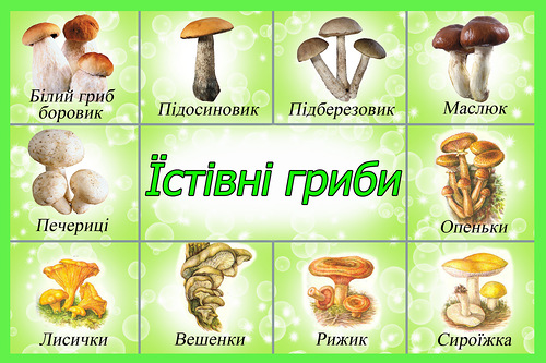 | I | Білий гриб, рижик смачний, хрящ-молочник справжній |